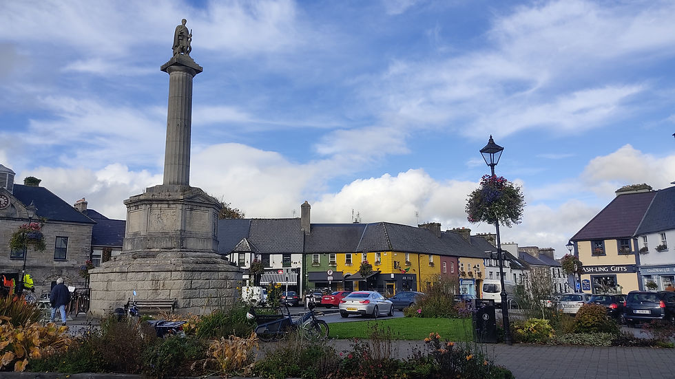 J’ai continué à descendre vers le sud et me suis arrêté à Westport. C’est une ville vivante qui s’étire le long d’une rivière et qui éclate de couleurs avec ses façades peintes. Son point central est la place articulée autour d’une colonne sur laquelle figure la statue du saint national, St Patrick. Je me suis empressé d’aller admirer à quelques encablures une belle résidence du 18ème siècle au coeur d’un parc magnifique. Le soleil était de la partie.